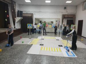 Ребята разделились на две команды, выбрали капитанов и, соревнуясь друг с другом, показывали свои знания дорожного движения.